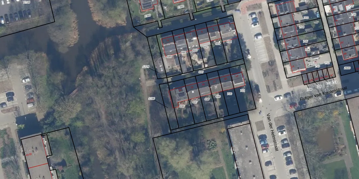 Van der Helmstraat 23 is gelegen op kadastraal perceel KLG00K696. Deze kadastrale aanduiding is uniek en wordt gebruikt door het Kadaster om eigendomsrechten en andere zakelijke rechten vast te leggen. Het perceel maakt onderdeel uit van de kadastrale gemeente Kralingen.