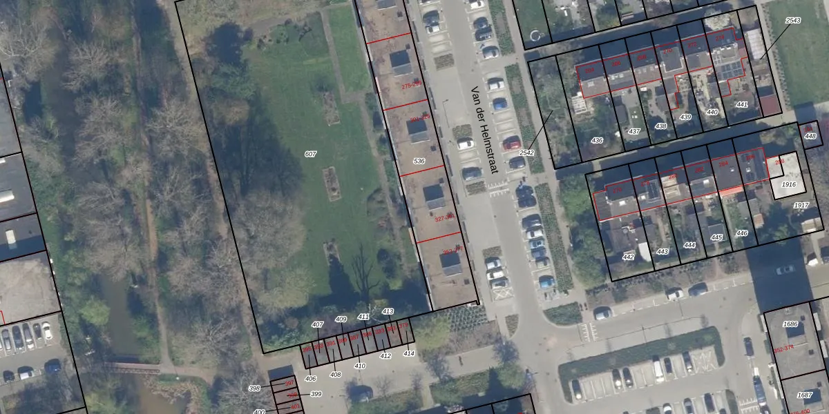 Het perceel waarop Van der Helmstraat 339 staat heeft een oppervlakte van 943 m². Dit is een groot perceel. De perceeloppervlakte wordt geregistreerd door het Kadaster. Gedetailleerde informatie over de maten van dit perceel kunt u vinden in het rapport Kadastrale kaart met maatvoering van Van der Helmstraat 339.