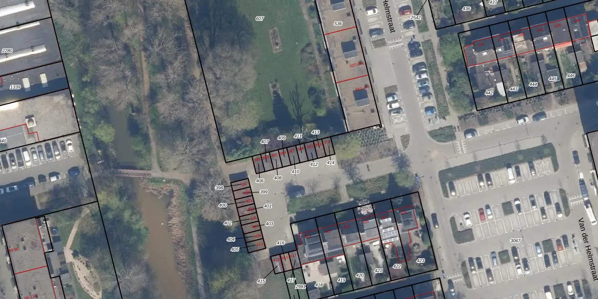Van der Helmstraat 385 is gelegen op kadastraal perceel KLG00K411. Deze kadastrale aanduiding is uniek en wordt gebruikt door het Kadaster om eigendomsrechten en andere zakelijke rechten vast te leggen. Het perceel maakt onderdeel uit van de kadastrale gemeente Kralingen.