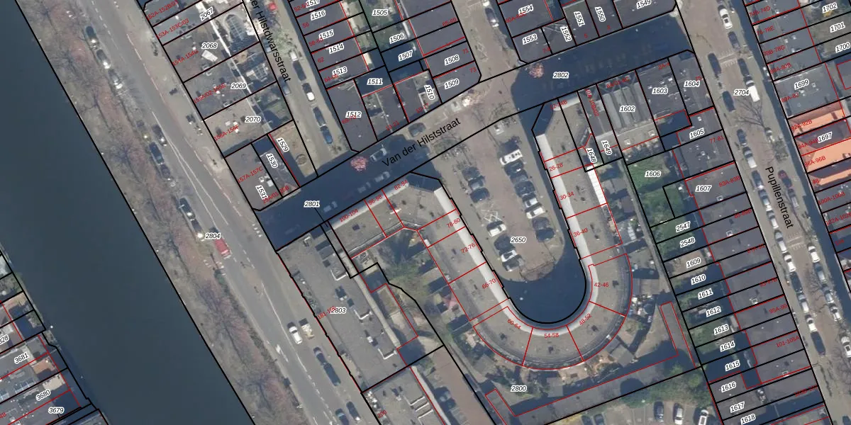Het perceel waarop Van der Hilststraat 84 staat heeft een oppervlakte van 2870 m². Dit is een zeer groot perceel. De perceeloppervlakte wordt geregistreerd door het Kadaster. Gedetailleerde informatie over de maten van dit perceel kunt u vinden in het rapport Kadastrale kaart met maatvoering van Van der Hilststraat 84.