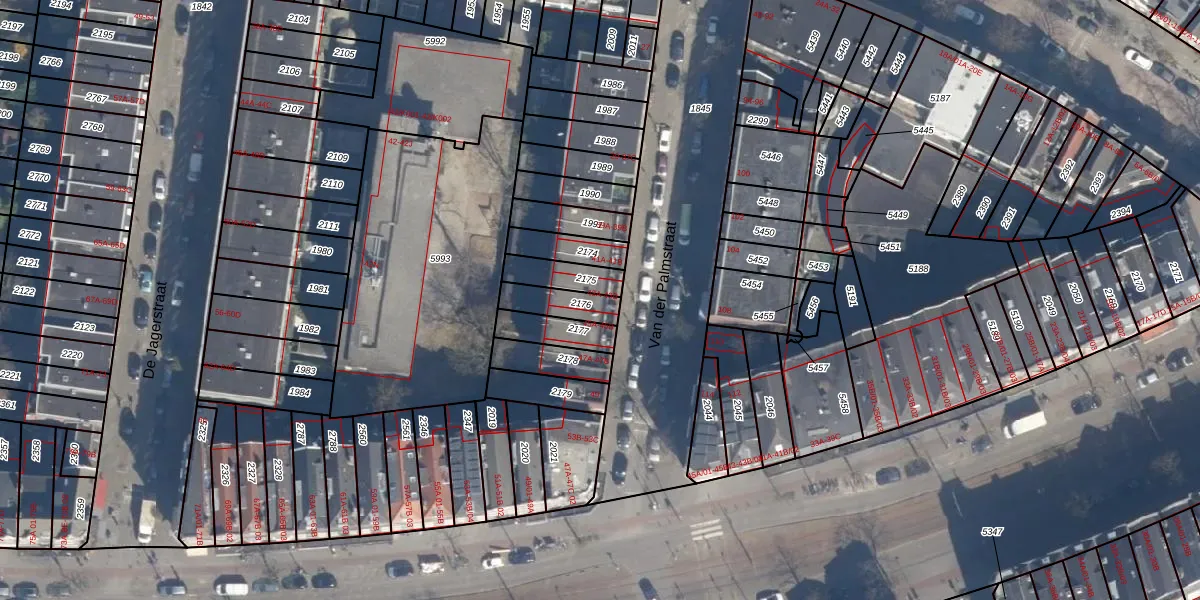 Het perceel waarop Van der Palmstraat 43-A staat heeft een oppervlakte van 93 m². Dit is een klein perceel. De perceeloppervlakte wordt geregistreerd door het Kadaster. Gedetailleerde informatie over de maten van dit perceel kunt u vinden in het rapport Kadastrale kaart met maatvoering van Van der Palmstraat 43-A.