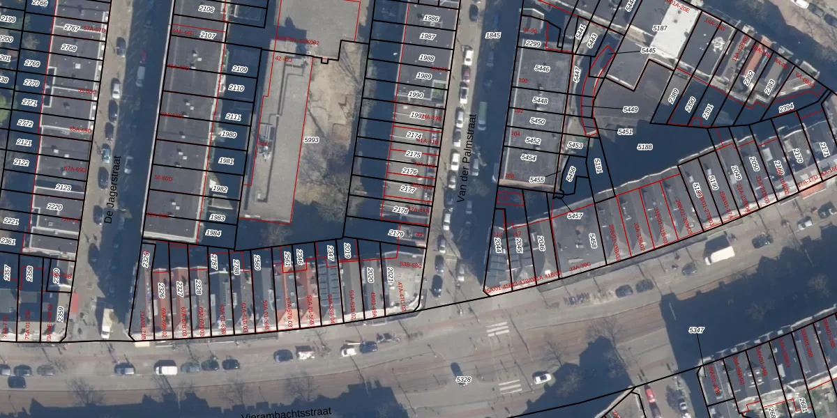 Het perceel waarop Van der Palmstraat 47-B staat heeft een oppervlakte van 104 m². Dit is een middelgroot perceel. De perceeloppervlakte wordt geregistreerd door het Kadaster. Gedetailleerde informatie over de maten van dit perceel kunt u vinden in het rapport Kadastrale kaart met maatvoering van Van der Palmstraat 47-B.