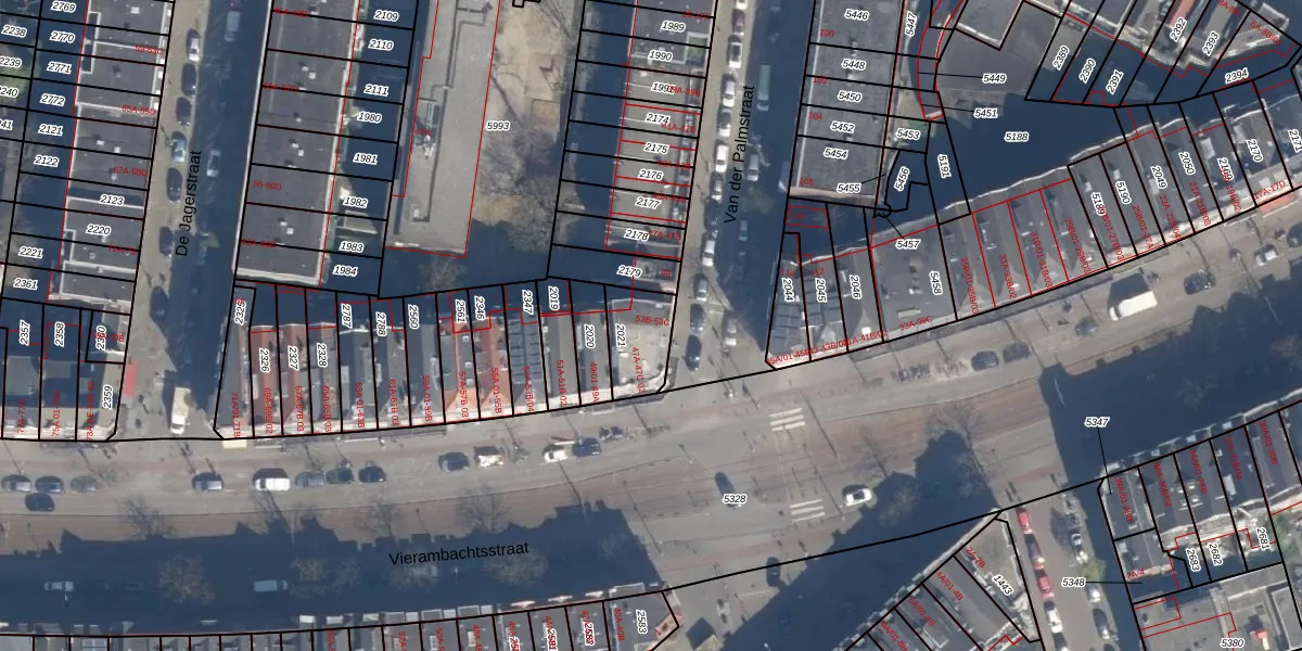 Van der Palmstraat 53-A is gelegen op kadastraal perceel DHV00C2021. Deze kadastrale aanduiding is uniek en wordt gebruikt door het Kadaster om eigendomsrechten en andere zakelijke rechten vast te leggen. Het perceel maakt onderdeel uit van de kadastrale gemeente Delfshaven.