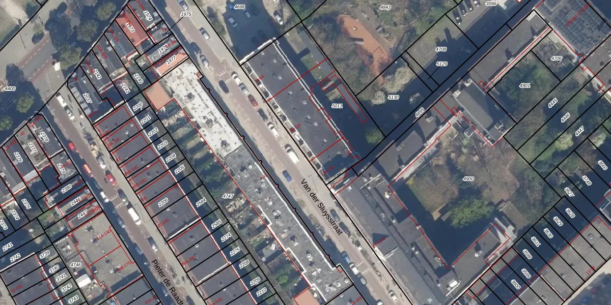 Van der Sluysstraat 116 is gelegen op kadastraal perceel RTD06S5011. Deze kadastrale aanduiding is uniek en wordt gebruikt door het Kadaster om eigendomsrechten en andere zakelijke rechten vast te leggen. Het perceel maakt onderdeel uit van de kadastrale gemeente Rotterdam.