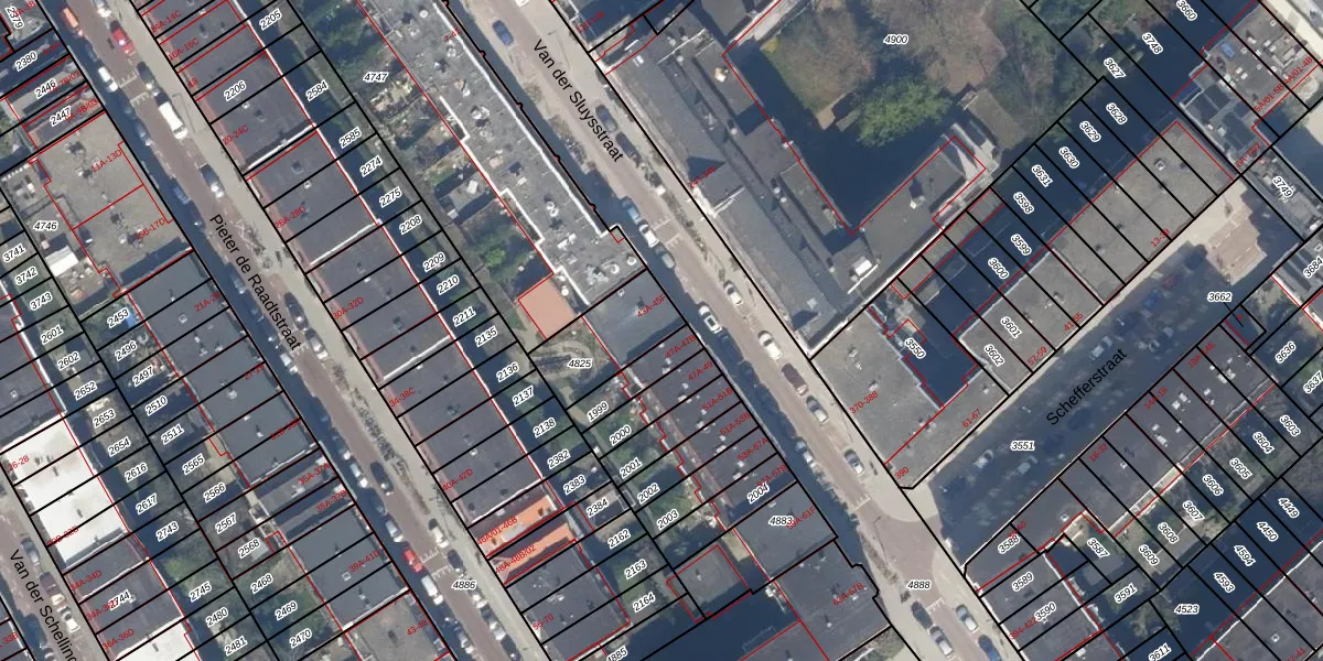 Van der Sluysstraat 45-E is gelegen op kadastraal perceel RTD06S4825. Deze kadastrale aanduiding is uniek en wordt gebruikt door het Kadaster om eigendomsrechten en andere zakelijke rechten vast te leggen. Het perceel maakt onderdeel uit van de kadastrale gemeente Rotterdam.