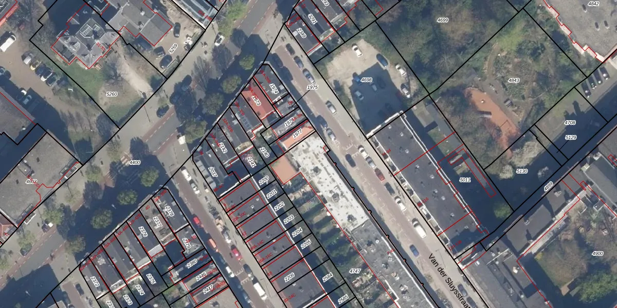 Het perceel waarop Van der Sluysstraat 7 staat heeft een oppervlakte van 1800 m². Dit is een zeer groot perceel. De perceeloppervlakte wordt geregistreerd door het Kadaster. Gedetailleerde informatie over de maten van dit perceel kunt u vinden in het rapport Kadastrale kaart met maatvoering van Van der Sluysstraat 7.