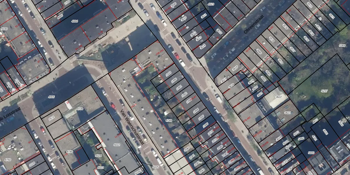 Het perceel waarop het adres ligt is RTD06-S-1991. De afkorting 'RTD06' staat voor kadastrale gemeente Rotterdam. De gemiddelde perceelgrootte in Rotterdam is 692,84 m². Dit perceel is kleiner: de perceeloppervlakte bedraagt 86 m². Het grootste perceel in de kadastrale gemeente is 4,7 ha. Het kleinste perceel heeft een oppervlakte van 0 m². Op het perceel liggen in totaal 6 adressen. De huidige grenzen van het perceel zijn digitaal in de Basisregistratie Kadaster (BRK) geregistreerd op 13-02-2003.