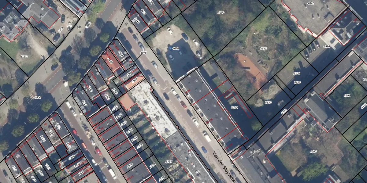 Het perceel waarop Van der Sluysstraat 86 staat heeft een oppervlakte van 1194 m². Dit is een zeer groot perceel. De perceeloppervlakte wordt geregistreerd door het Kadaster. Gedetailleerde informatie over de maten van dit perceel kunt u vinden in het rapport Kadastrale kaart met maatvoering van Van der Sluysstraat 86.