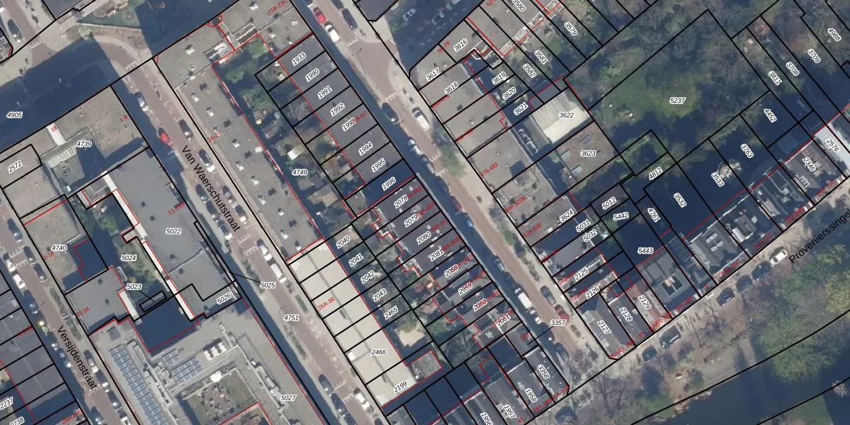 Het perceel waarop Van der Sluysstraat 95-D staat heeft een oppervlakte van 95 m². Dit is een klein perceel. De perceeloppervlakte wordt geregistreerd door het Kadaster. Gedetailleerde informatie over de maten van dit perceel kunt u vinden in het rapport Kadastrale kaart met maatvoering van Van der Sluysstraat 95-D.