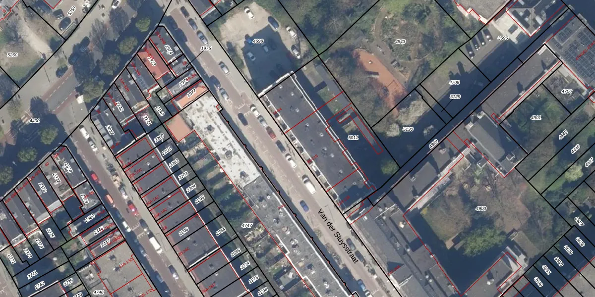 Het perceel waarop Van der Sluysstraat 98 staat heeft een oppervlakte van 1194 m². Dit is een zeer groot perceel. De perceeloppervlakte wordt geregistreerd door het Kadaster. Gedetailleerde informatie over de maten van dit perceel kunt u vinden in het rapport Kadastrale kaart met maatvoering van Van der Sluysstraat 98.