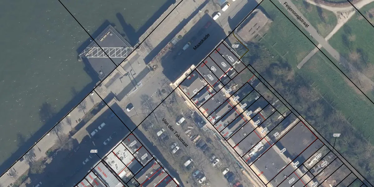 Het perceel waarop het adres ligt is RTD05-Q-761. De afkorting 'RTD05' staat voor kadastrale gemeente Rotterdam. De gemiddelde perceelgrootte in Rotterdam is 1402,06 m². Dit perceel is kleiner: de perceeloppervlakte bedraagt 129 m². Het grootste perceel in de kadastrale gemeente is 36,8 ha. Het kleinste perceel heeft een oppervlakte van 0 m². Er zijn 3 adressen aanwezig op het perceel. De huidige grenzen van het perceel zijn digitaal in de Basisregistratie Kadaster (BRK) geregistreerd op 20-10-2006.