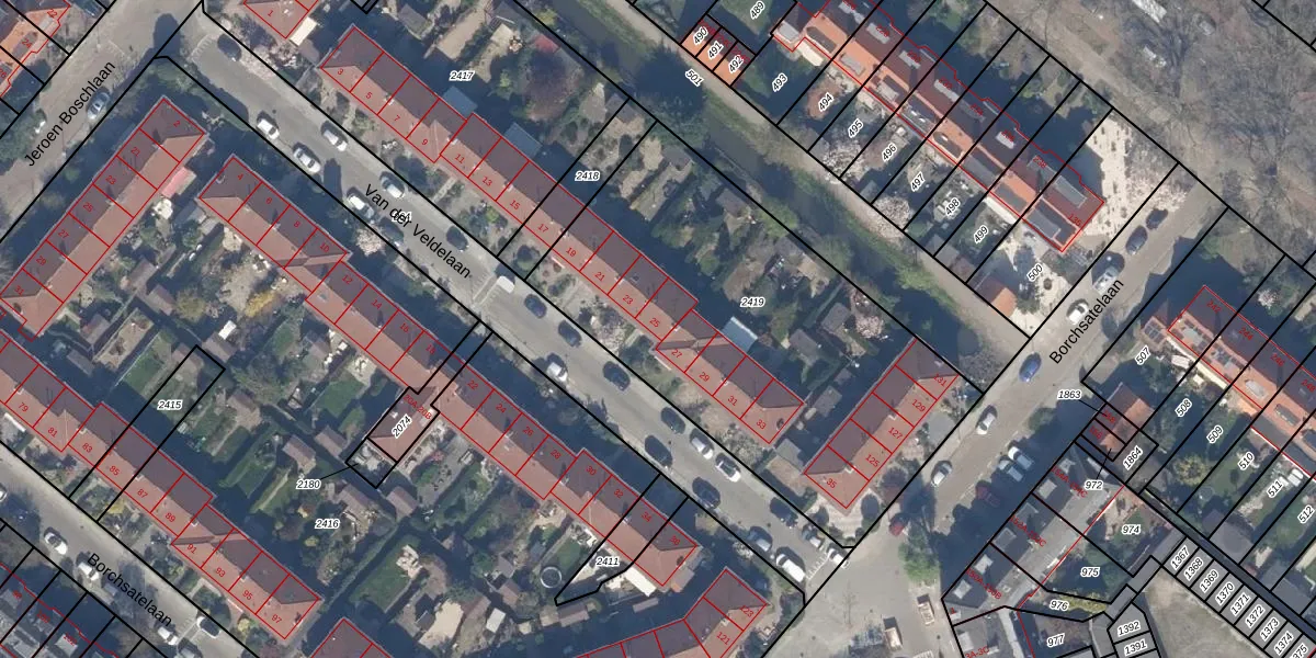 Het perceel waarop Van der Veldelaan 25 staat heeft een oppervlakte van 2051 m². Dit is een zeer groot perceel. De perceeloppervlakte wordt geregistreerd door het Kadaster. Gedetailleerde informatie over de maten van dit perceel kunt u vinden in het rapport Kadastrale kaart met maatvoering van Van der Veldelaan 25.