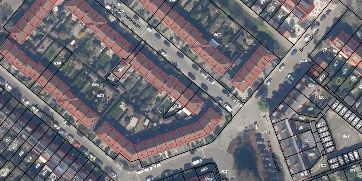 Het perceel waarop Van der Veldelaan 32 staat heeft een oppervlakte van 6750 m². Dit is een zeer groot perceel. De perceeloppervlakte wordt geregistreerd door het Kadaster. Gedetailleerde informatie over de maten van dit perceel kunt u vinden in het rapport Kadastrale kaart met maatvoering van Van der Veldelaan 32.