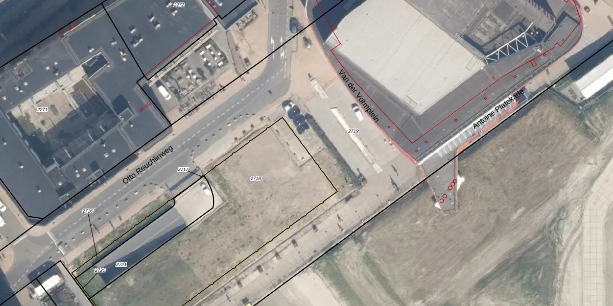 Het adres ligt op het perceel RTD05-P-2718, dat zich in de kadastrale gemeente Rotterdam bevindt. De oppervlakte van het perceel is 2044 m². Dat is groter dan gemiddeld in Rotterdam, waar de gemiddelde perceeloppervlakte op 1401,53 m² ligt. Het kleinste perceel in de kadastrale gemeente is 0 m² groot. De grootste perceeloppervlakte is 36,8 ha. Er zijn 923 adressen aanwezig op het perceel. In de Basisregistratie Kadaster (BRK) werden de grenzen van het perceel geregistreerd op 25-09-2025.