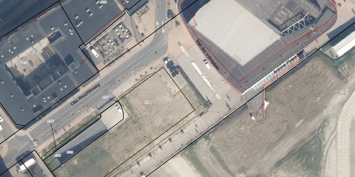 Het perceel waarop Van der Vormplein 577 staat heeft een oppervlakte van 2044 m². Dit is een zeer groot perceel. De perceeloppervlakte wordt geregistreerd door het Kadaster. Gedetailleerde informatie over de maten van dit perceel kunt u vinden in het rapport Kadastrale kaart met maatvoering van Van der Vormplein 577.