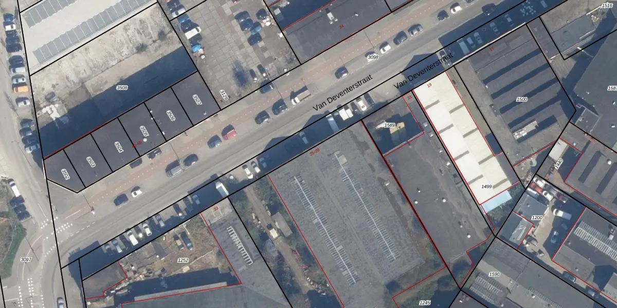 Het perceel waarop Van Deventerstraat 25 staat heeft een oppervlakte van 3837 m². Dit is een zeer groot perceel. De perceeloppervlakte wordt geregistreerd door het Kadaster. Gedetailleerde informatie over de maten van dit perceel kunt u vinden in het rapport Kadastrale kaart met maatvoering van Van Deventerstraat 25.