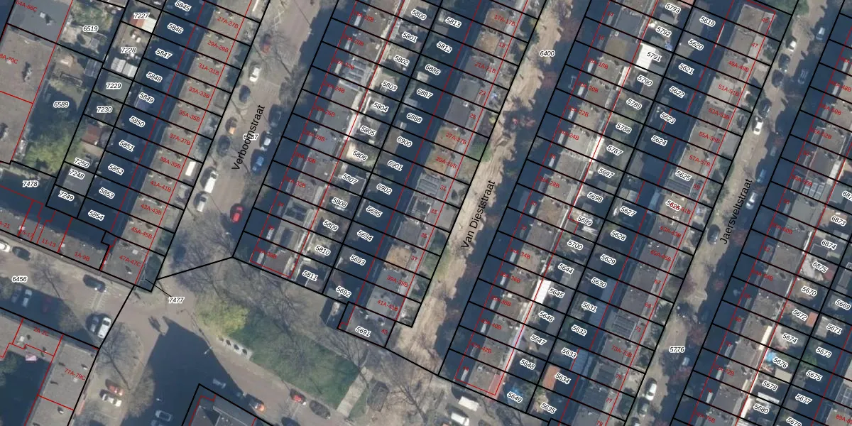Gebruik de zoekbalk of klik op een perceel voor informatie over de adressen binnen dit perceel.