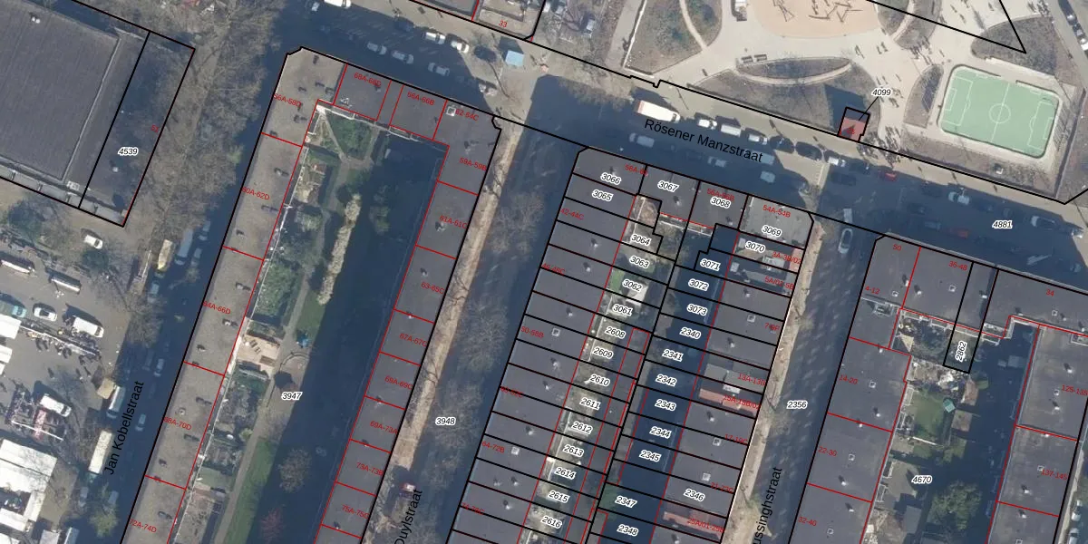 Van Duylstraat 46 is gelegen op kadastraal perceel DHV00H3061. Deze kadastrale aanduiding is uniek en wordt gebruikt door het Kadaster om eigendomsrechten en andere zakelijke rechten vast te leggen. Het perceel maakt onderdeel uit van de kadastrale gemeente Delfshaven.
