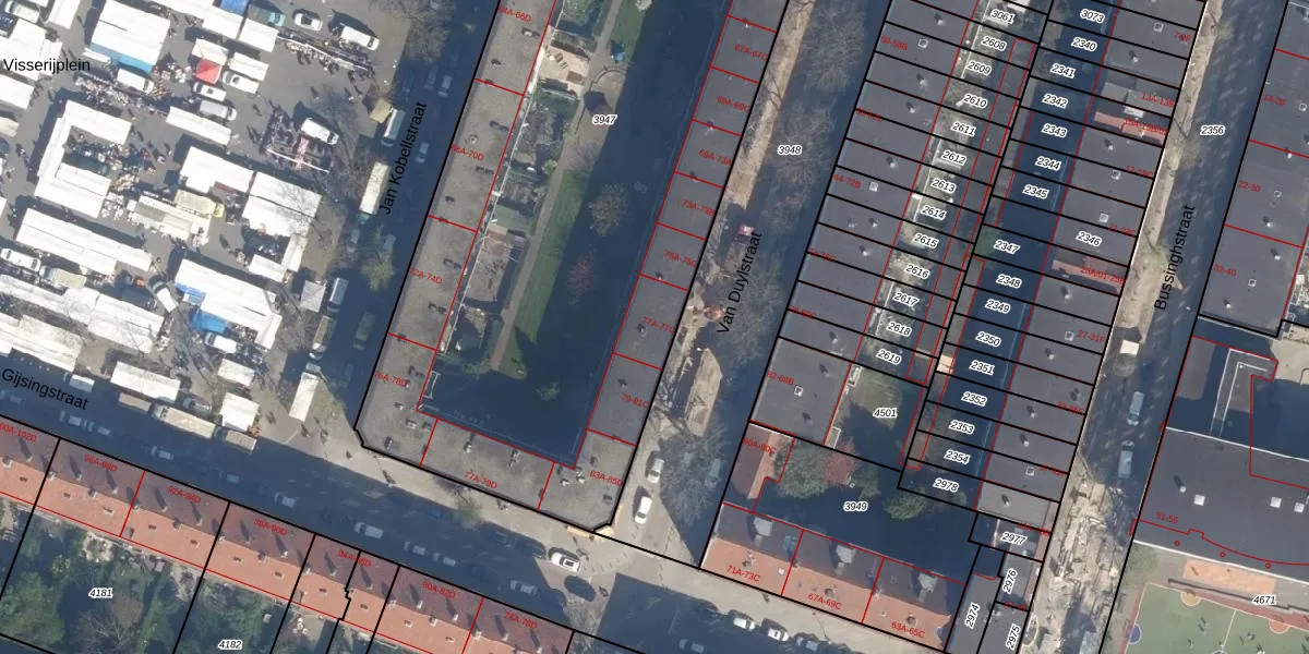 Van Duylstraat 77-B is gelegen op kadastraal perceel DHV00H3947. Deze kadastrale aanduiding is uniek en wordt gebruikt door het Kadaster om eigendomsrechten en andere zakelijke rechten vast te leggen. Het perceel maakt onderdeel uit van de kadastrale gemeente Delfshaven.