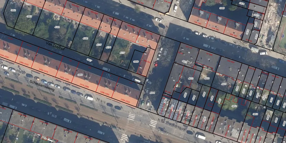 Van Duylstraat 91-A is gelegen op kadastraal perceel DHV00H3956. Deze kadastrale aanduiding is uniek en wordt gebruikt door het Kadaster om eigendomsrechten en andere zakelijke rechten vast te leggen. Het perceel maakt onderdeel uit van de kadastrale gemeente Delfshaven.