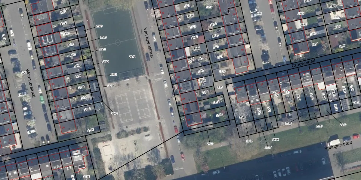 Het perceel waarop Van Epenstraat 42 staat heeft een oppervlakte van 141 m². Dit is een middelgroot perceel. De perceeloppervlakte wordt geregistreerd door het Kadaster. Gedetailleerde informatie over de maten van dit perceel kunt u vinden in het rapport Kadastrale kaart met maatvoering van Van Epenstraat 42.