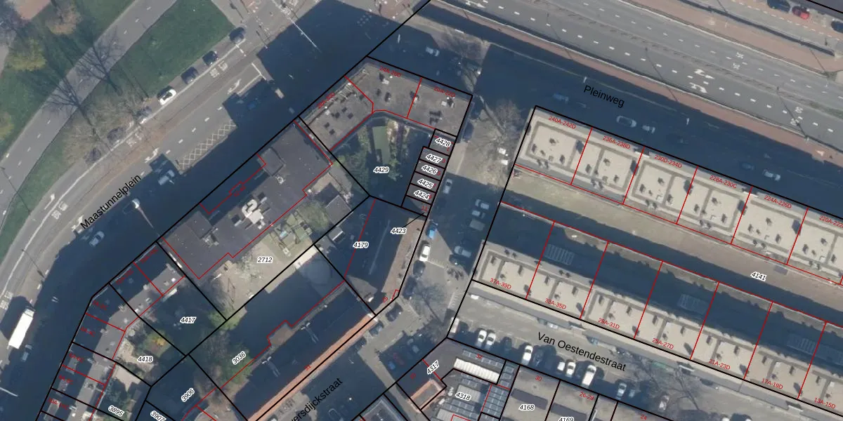 Het adres ligt op het perceel CLS00-E-4423, dat zich in de kadastrale gemeente Charlois bevindt. Het perceel is 23 m² groot. Dat is kleiner dan de gemiddelde perceeloppervlakte in Charlois, dat op 1143,45 m² ligt. De grootste perceeloppervlakte in de kadastrale gemeente is 1,09 km². De kleinste oppervlakte bedraagt 0 m². Dit is het enige adres dat aanwezig is op het perceel. De huidige grenzen van het perceel zijn digitaal in de Basisregistratie Kadaster (BRK) geregistreerd op 10-06-2003.