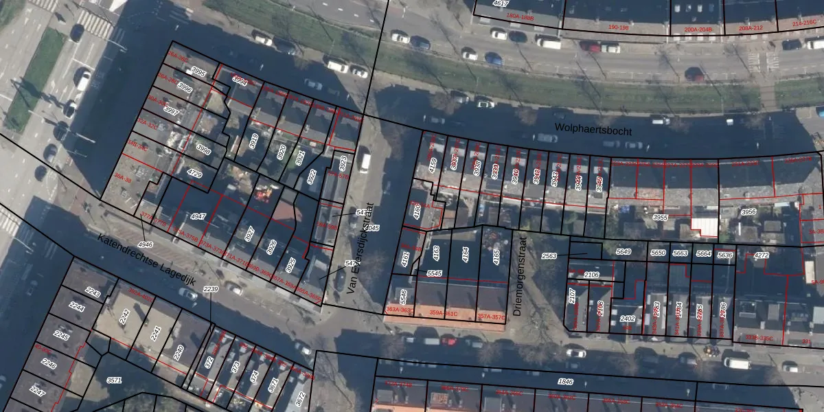 Gebruik de zoekbalk of klik op een perceel voor informatie over de adressen binnen dit perceel.