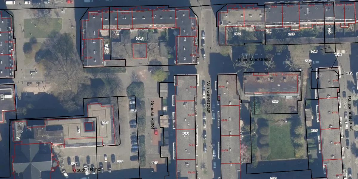 Van Galenstraat 41 is gelegen op kadastraal perceel RTD07R7172. Deze kadastrale aanduiding is uniek en wordt gebruikt door het Kadaster om eigendomsrechten en andere zakelijke rechten vast te leggen. Het perceel maakt onderdeel uit van de kadastrale gemeente Rotterdam.