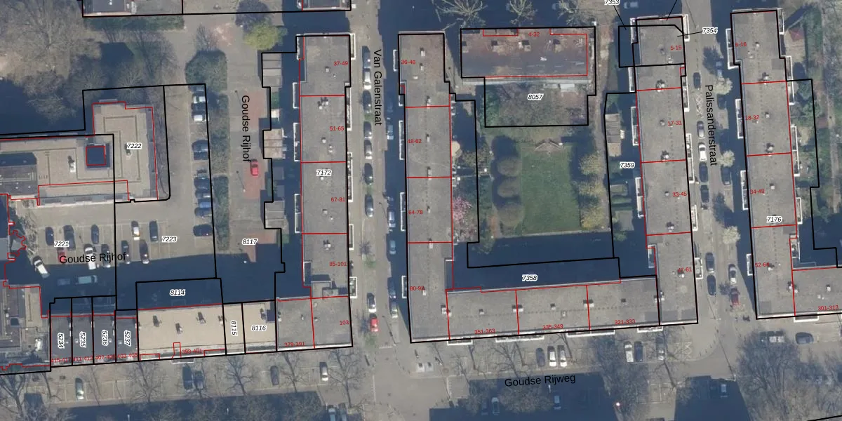 Van Galenstraat 64 is gelegen op kadastraal perceel RTD07R7358. Deze kadastrale aanduiding is uniek en wordt gebruikt door het Kadaster om eigendomsrechten en andere zakelijke rechten vast te leggen. Het perceel maakt onderdeel uit van de kadastrale gemeente Rotterdam.