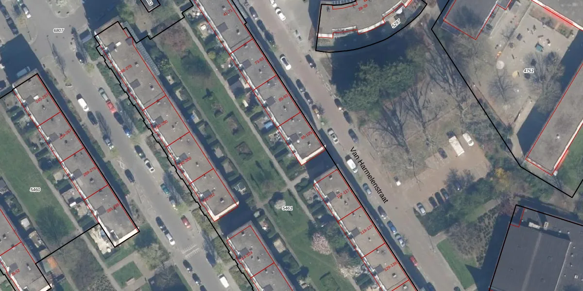 Van Harmelenstraat 103 is gelegen op kadastraal perceel OVS00C5461. Deze kadastrale aanduiding is uniek en wordt gebruikt door het Kadaster om eigendomsrechten en andere zakelijke rechten vast te leggen. Het perceel maakt onderdeel uit van de kadastrale gemeente Overschie.