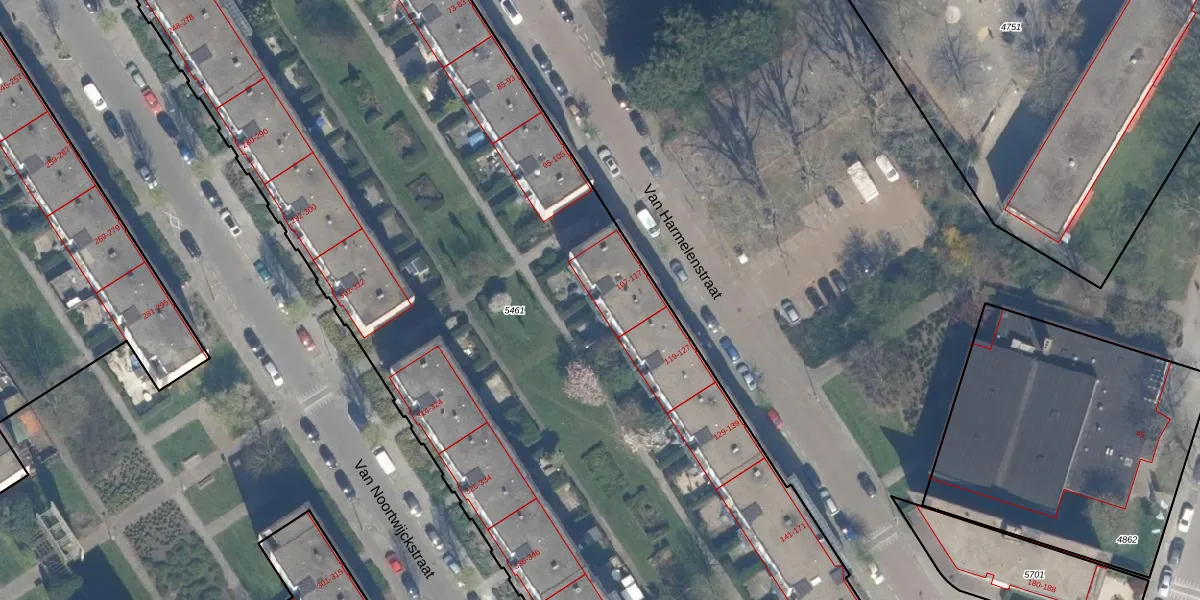 Van Harmelenstraat 111 is gelegen op kadastraal perceel OVS00C5461. Deze kadastrale aanduiding is uniek en wordt gebruikt door het Kadaster om eigendomsrechten en andere zakelijke rechten vast te leggen. Het perceel maakt onderdeel uit van de kadastrale gemeente Overschie.
