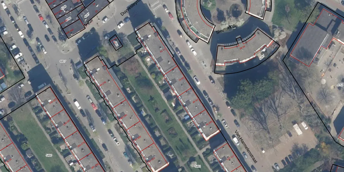 Van Harmelenstraat 73 is gelegen op kadastraal perceel OVS00C5461. Deze kadastrale aanduiding is uniek en wordt gebruikt door het Kadaster om eigendomsrechten en andere zakelijke rechten vast te leggen. Het perceel maakt onderdeel uit van de kadastrale gemeente Overschie.