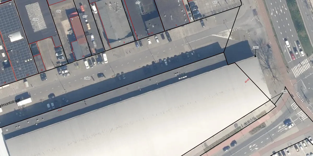 Het perceel waarop het adres ligt is RTD10-AA-2480. De afkorting 'RTD10' staat voor kadastrale gemeente Rotterdam. De oppervlakte van het perceel is 1,7 ha. Dat is groter dan gemiddeld in Rotterdam, waar de gemiddelde perceeloppervlakte op 1601,7 m² ligt. Het grootste perceel in de kadastrale gemeente is 30,3 ha. Het kleinste perceel heeft een oppervlakte van 0 m². Op het perceel zijn 12 adressen aanwezig. De laatste wijziging in het de Basisregistratie Kadaster (BRK) was op 21-02-2011.