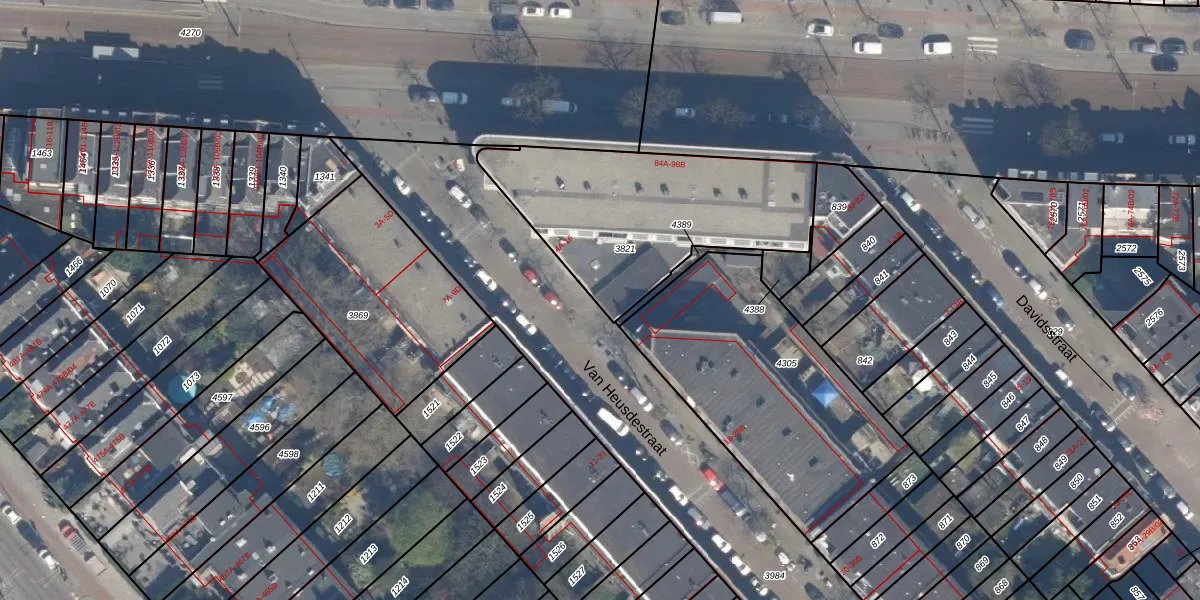 Van Heusdestraat 16 is gelegen op kadastraal perceel DHV00I3821. Deze kadastrale aanduiding is uniek en wordt gebruikt door het Kadaster om eigendomsrechten en andere zakelijke rechten vast te leggen. Het perceel maakt onderdeel uit van de kadastrale gemeente Delfshaven.