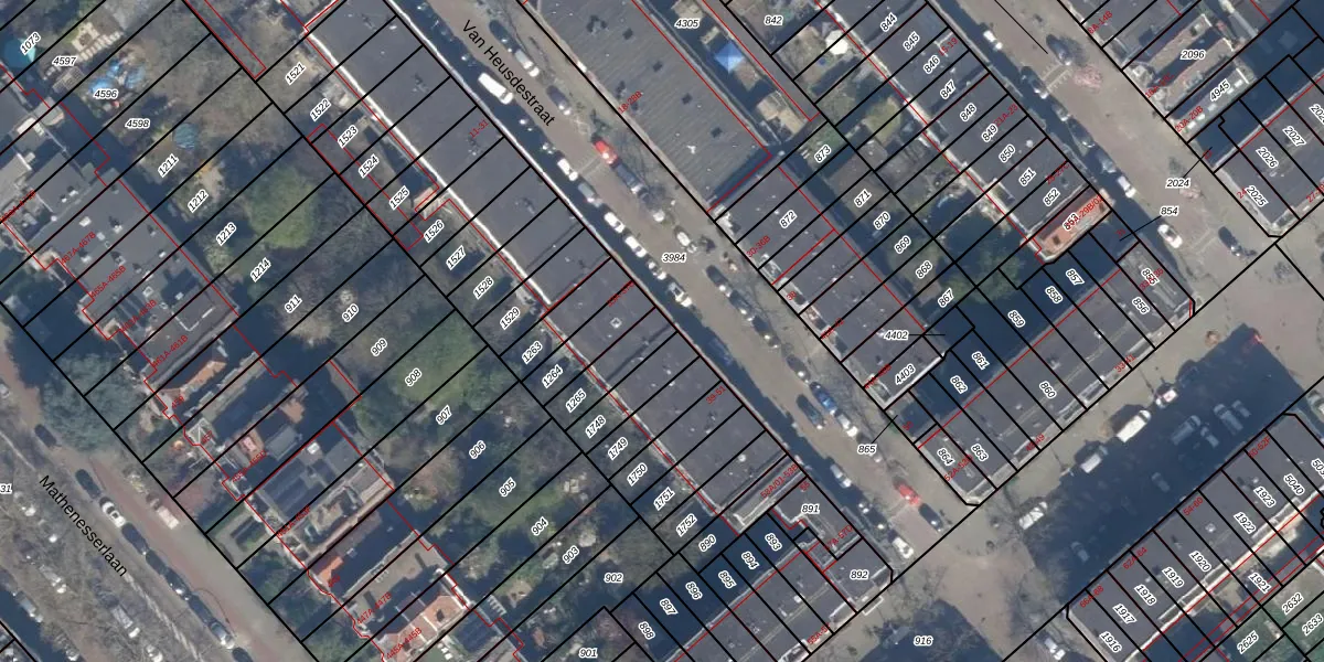 Van Heusdestraat 39 is gelegen op kadastraal perceel DHV00I1265. Deze kadastrale aanduiding is uniek en wordt gebruikt door het Kadaster om eigendomsrechten en andere zakelijke rechten vast te leggen. Het perceel maakt onderdeel uit van de kadastrale gemeente Delfshaven.