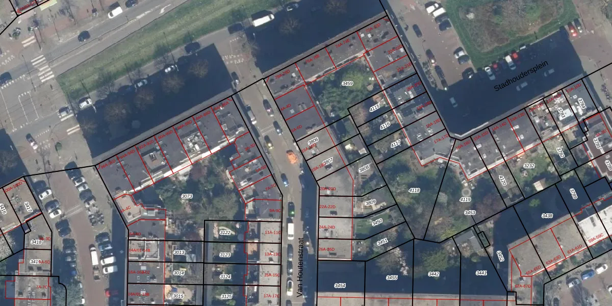 Van Houtenstraat 16-B is gelegen op kadastraal perceel RTD10Z3806. Deze kadastrale aanduiding is uniek en wordt gebruikt door het Kadaster om eigendomsrechten en andere zakelijke rechten vast te leggen. Het perceel maakt onderdeel uit van de kadastrale gemeente Rotterdam.
