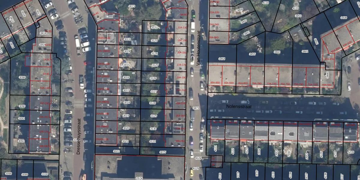 Van Houtenstraat 21-A is gelegen op kadastraal perceel RTD10Z3127. Deze kadastrale aanduiding is uniek en wordt gebruikt door het Kadaster om eigendomsrechten en andere zakelijke rechten vast te leggen. Het perceel maakt onderdeel uit van de kadastrale gemeente Rotterdam.