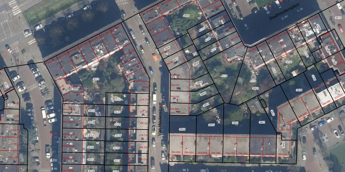 Van Houtenstraat 22-C is gelegen op kadastraal perceel RTD10Z3809. Deze kadastrale aanduiding is uniek en wordt gebruikt door het Kadaster om eigendomsrechten en andere zakelijke rechten vast te leggen. Het perceel maakt onderdeel uit van de kadastrale gemeente Rotterdam.