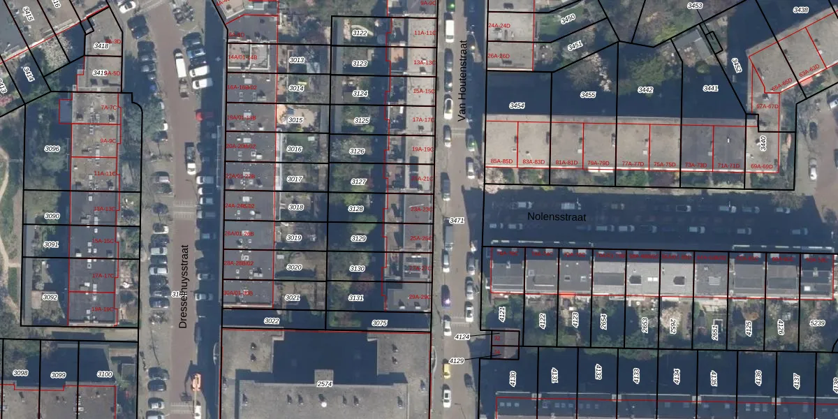 Van Houtenstraat 23-A is gelegen op kadastraal perceel RTD10Z3128. Deze kadastrale aanduiding is uniek en wordt gebruikt door het Kadaster om eigendomsrechten en andere zakelijke rechten vast te leggen. Het perceel maakt onderdeel uit van de kadastrale gemeente Rotterdam.