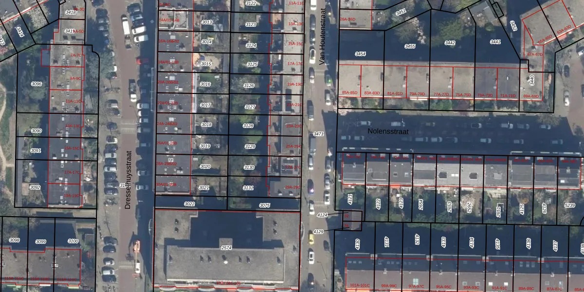 Van Houtenstraat 25-B is gelegen op kadastraal perceel RTD10Z3129. Deze kadastrale aanduiding is uniek en wordt gebruikt door het Kadaster om eigendomsrechten en andere zakelijke rechten vast te leggen. Het perceel maakt onderdeel uit van de kadastrale gemeente Rotterdam.