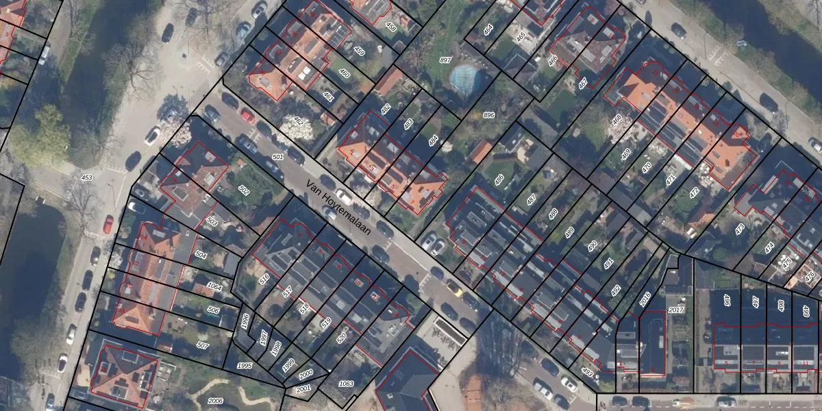 Het perceel waarop Van Hoytemalaan 7 staat heeft een oppervlakte van 469 m². Dit is een groot perceel. De perceeloppervlakte wordt geregistreerd door het Kadaster. Gedetailleerde informatie over de maten van dit perceel kunt u vinden in het rapport Kadastrale kaart met maatvoering van Van Hoytemalaan 7.