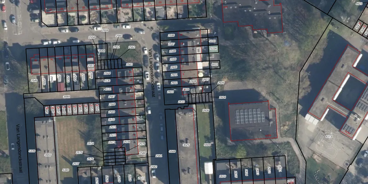 Van Langendonckstraat 1 is gelegen op kadastraal perceel ISM01C2603. Deze kadastrale aanduiding is uniek en wordt gebruikt door het Kadaster om eigendomsrechten en andere zakelijke rechten vast te leggen. Het perceel maakt onderdeel uit van de kadastrale gemeente IJsselmonde.