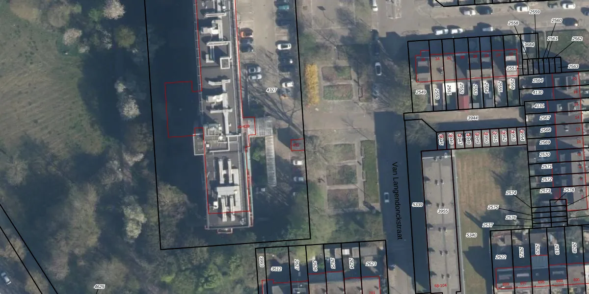 Het perceel waarop Van Langendonckstraat 451 staat heeft een oppervlakte van 5117 m². Dit is een zeer groot perceel. De perceeloppervlakte wordt geregistreerd door het Kadaster. Gedetailleerde informatie over de maten van dit perceel kunt u vinden in het rapport Kadastrale kaart met maatvoering van Van Langendonckstraat 451.