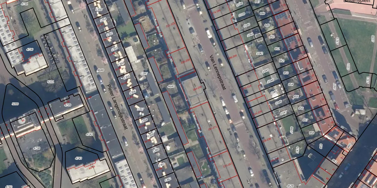 Het perceel waarop Van Lennepstraat 251 staat heeft een oppervlakte van 3722 m². Dit is een zeer groot perceel. De perceeloppervlakte wordt geregistreerd door het Kadaster. Gedetailleerde informatie over de maten van dit perceel kunt u vinden in het rapport Kadastrale kaart met maatvoering van Van Lennepstraat 251.