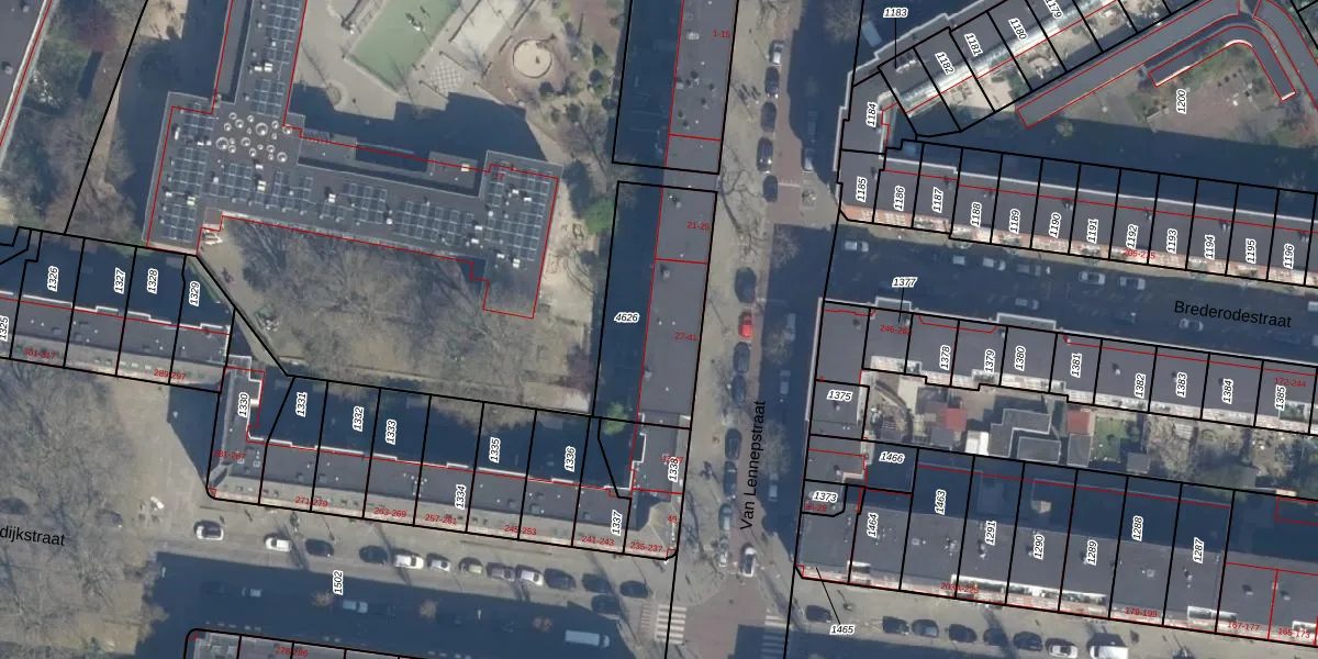 Het perceel waarop Van Lennepstraat 37 staat heeft een oppervlakte van 542 m². Dit is een groot perceel. De perceeloppervlakte wordt geregistreerd door het Kadaster. Gedetailleerde informatie over de maten van dit perceel kunt u vinden in het rapport Kadastrale kaart met maatvoering van Van Lennepstraat 37.