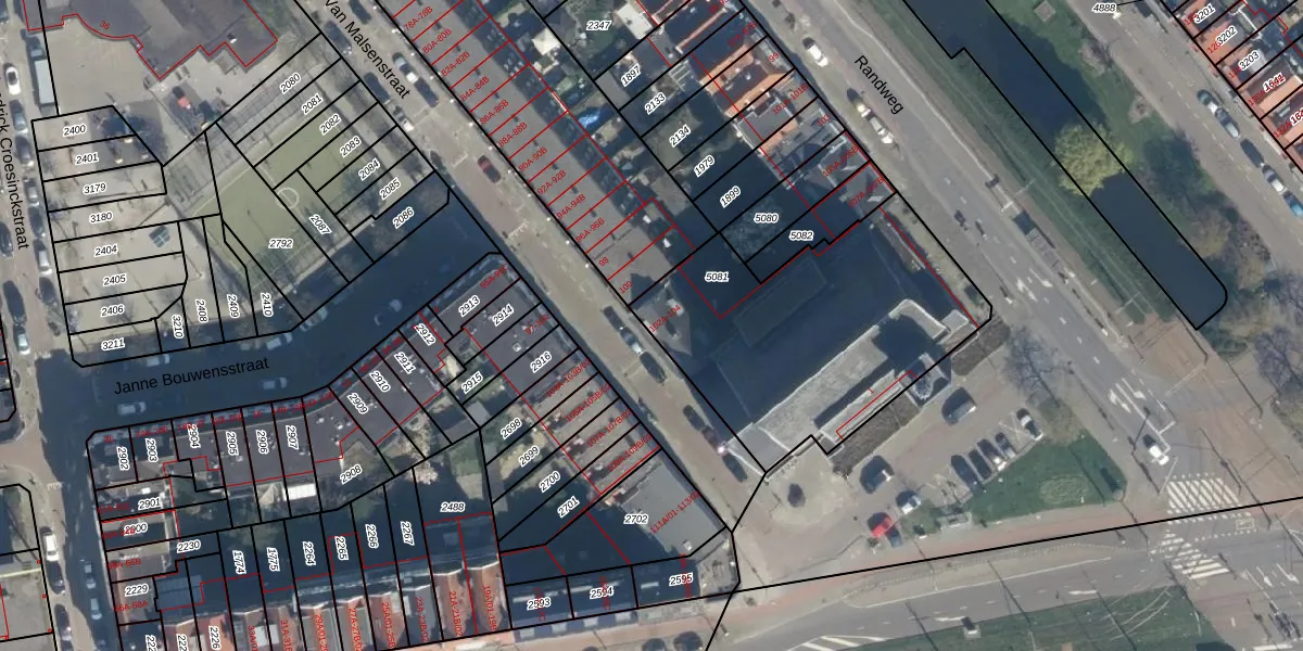 Van Malsenstraat 102-B is gelegen op kadastraal perceel CLS00F5081. Deze kadastrale aanduiding is uniek en wordt gebruikt door het Kadaster om eigendomsrechten en andere zakelijke rechten vast te leggen. Het perceel maakt onderdeel uit van de kadastrale gemeente Charlois.