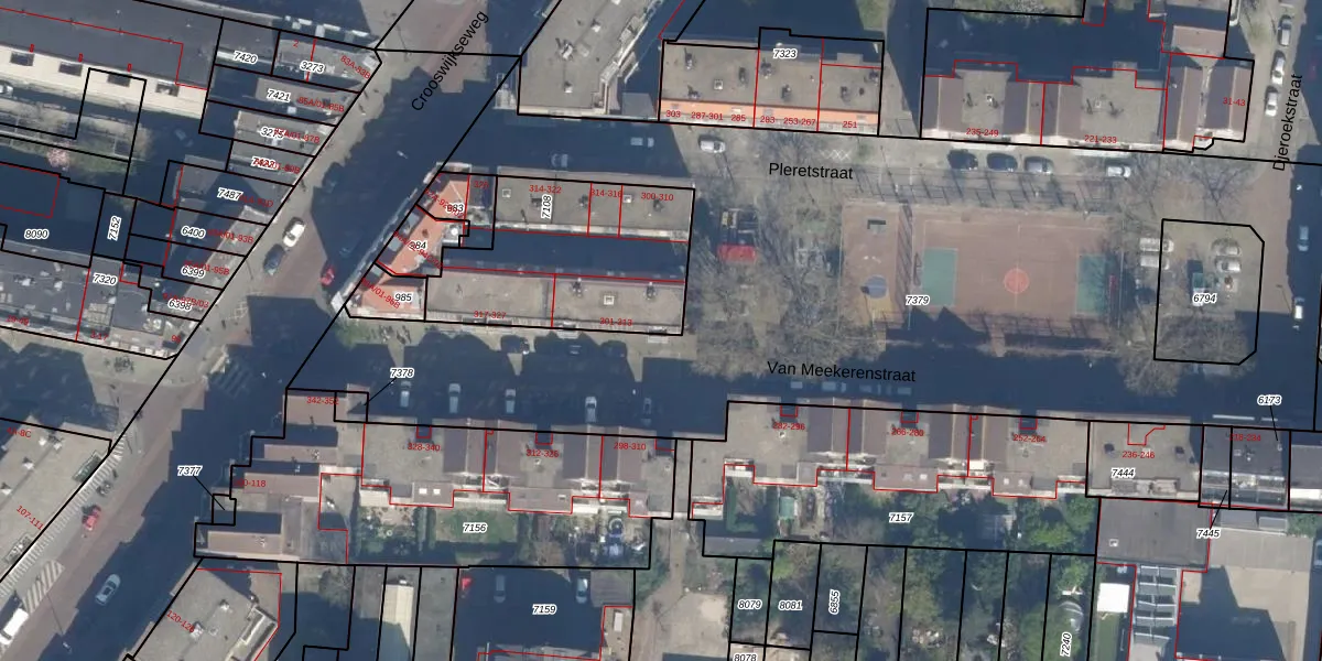 Van Meekerenstraat 301 is gelegen op kadastraal perceel RTD07R7108. Deze kadastrale aanduiding is uniek en wordt gebruikt door het Kadaster om eigendomsrechten en andere zakelijke rechten vast te leggen. Het perceel maakt onderdeel uit van de kadastrale gemeente Rotterdam.