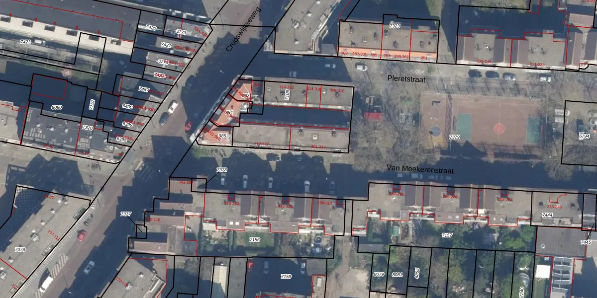 Van Meekerenstraat 307 is gelegen op kadastraal perceel RTD07R7108. Deze kadastrale aanduiding is uniek en wordt gebruikt door het Kadaster om eigendomsrechten en andere zakelijke rechten vast te leggen. Het perceel maakt onderdeel uit van de kadastrale gemeente Rotterdam.