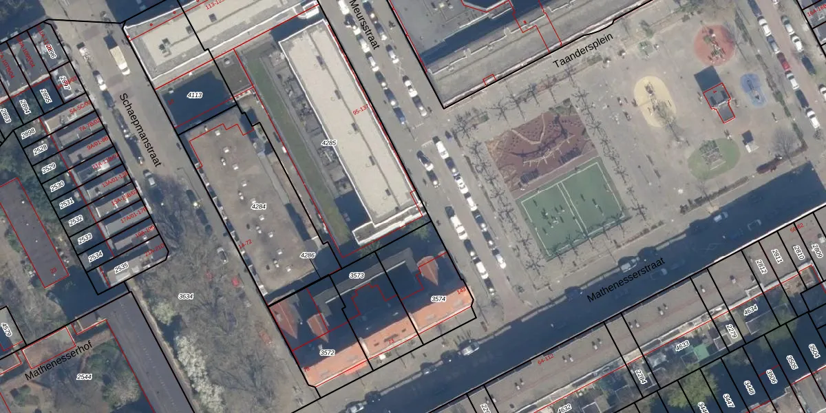 Het perceel waarop Van Meursstraat 97 staat heeft een oppervlakte van 2118 m². Dit is een zeer groot perceel. De perceeloppervlakte wordt geregistreerd door het Kadaster. Gedetailleerde informatie over de maten van dit perceel kunt u vinden in het rapport Kadastrale kaart met maatvoering van Van Meursstraat 97.