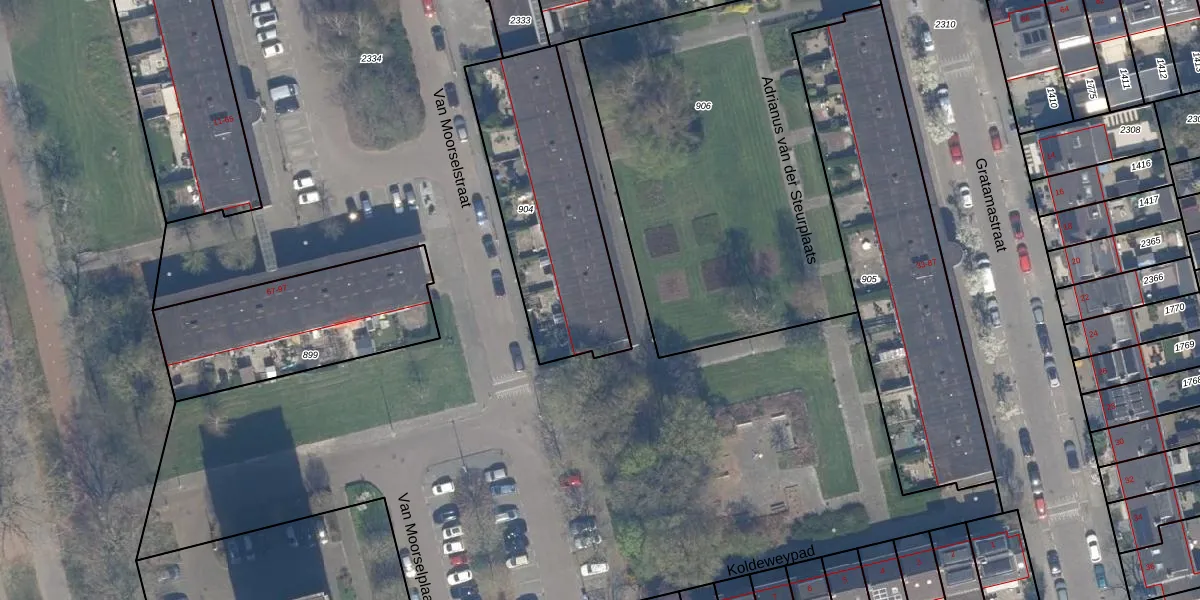 Van Moorselstraat 42 is gelegen op kadastraal perceel KLG00K904. Deze kadastrale aanduiding is uniek en wordt gebruikt door het Kadaster om eigendomsrechten en andere zakelijke rechten vast te leggen. Het perceel maakt onderdeel uit van de kadastrale gemeente Kralingen.